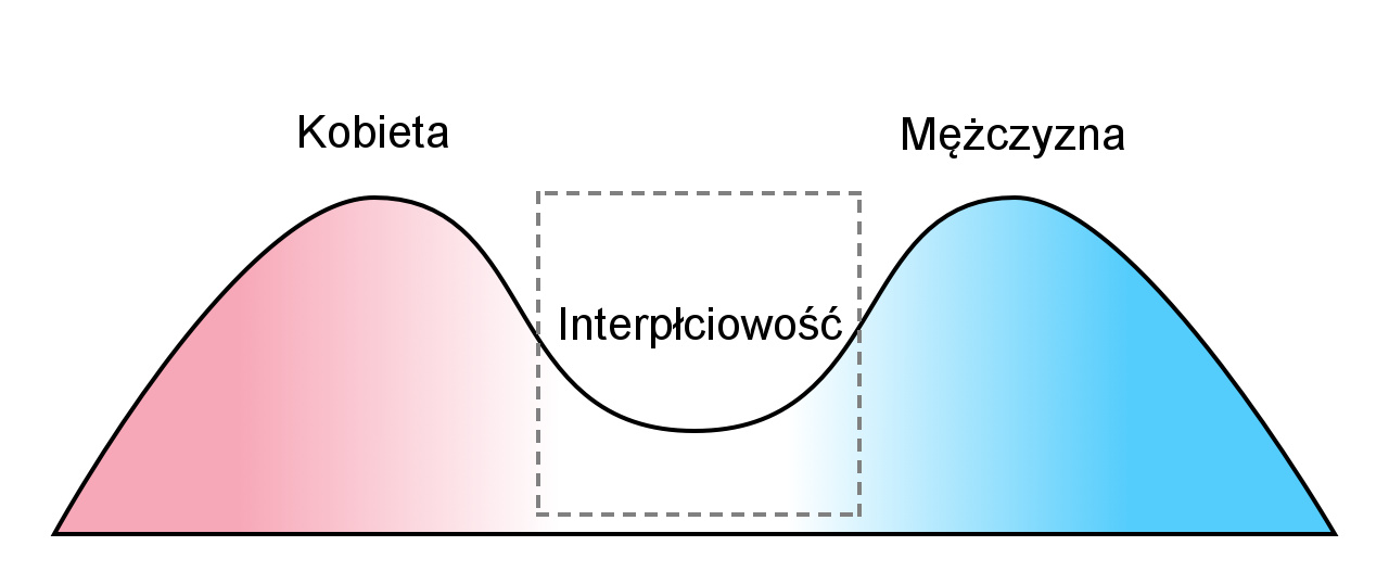 Tak samo wiele osób uważa, że również fenotyp jest binarny, lecz biologia wie już od setek lat, że jeśli umieścisz na wykresie wszystkie charakterystyki płciowe populacji, wykres, który uzyskasz, będzie przedstawiał rozkład bimodalny, w którym większość populacji znajduje się wewnątrz percentyla dwóch grup. Z tego wynika, że część ludzi nie mieści się w typowych dwóch grupach – z natury tego, jak działa życie. Wiele osób znajduje się pomiędzy, z charakterystykami typowymi dla obojga płci.