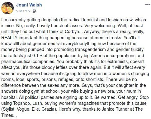 It's why the modern day 'gender crits' are against the proposed US Equality act, and the VAWA.
