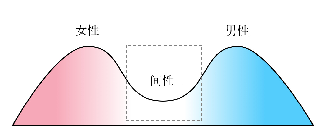 很多人认为表现型也是二元的。但生物学几百年来都认为,人类的性特征呈双驼峰型分布。大多数人与两极相差很小,但也有人不同两者,处于典型的两峰之外。很多有两性特征的人处在中间。
